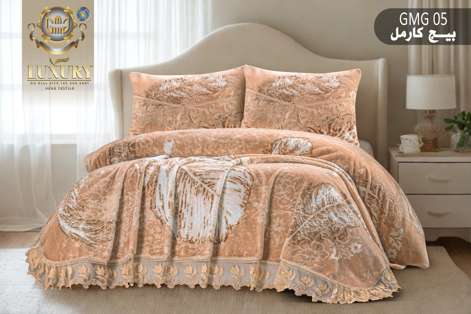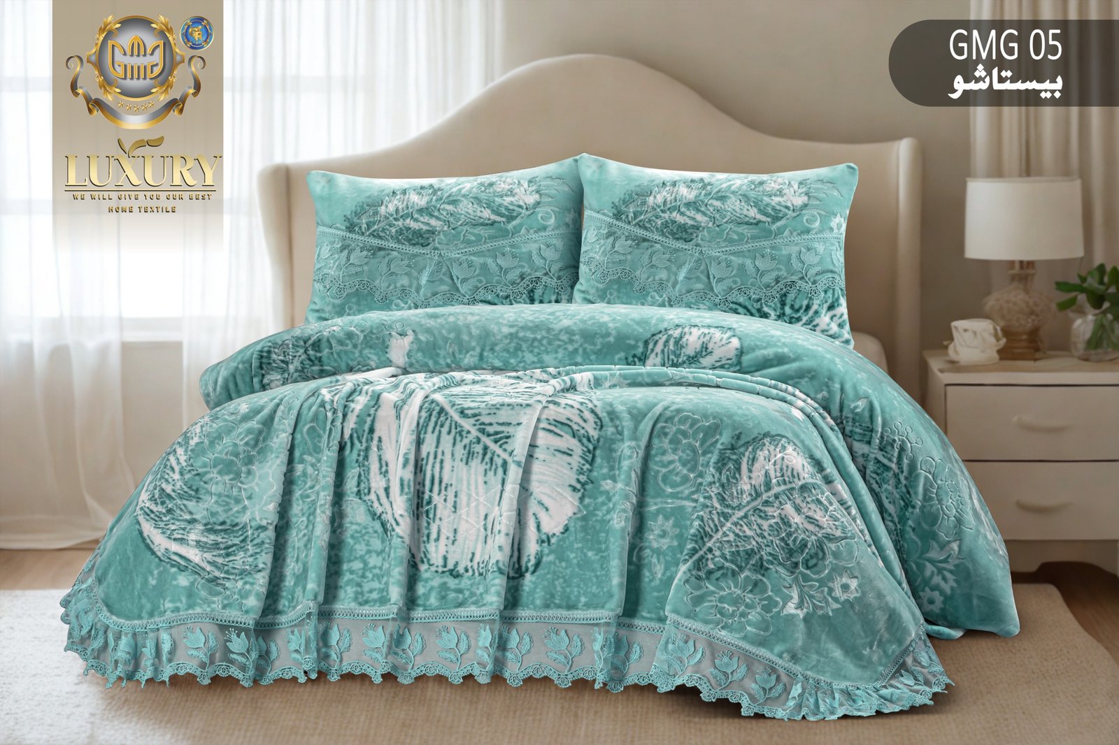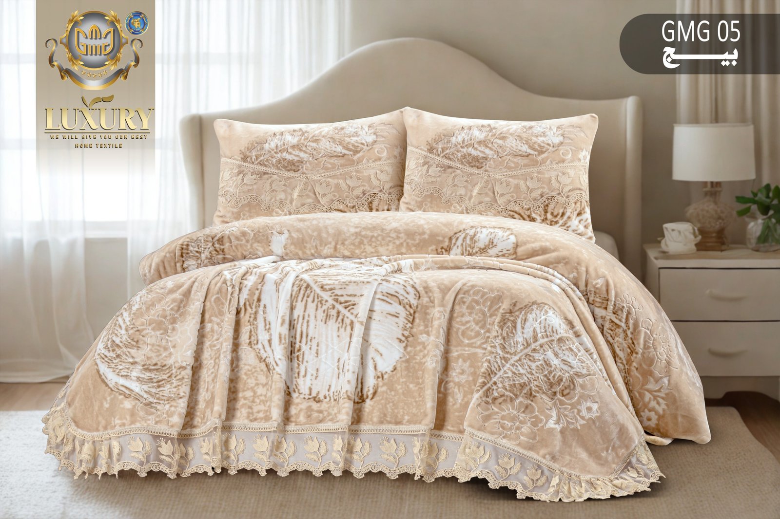 اغمر غرفة نومك بفخامة لا تضاهى مع مفرش السرير المصنوع من مواد تركية فائقة الجودة، بعناية مقدمة من شركة GMG Group. يجمع هذا المفرش بين التصميم العصري والتفاصيل الدقيقة لتوفير الجمال والراحة في آنٍ واحد.